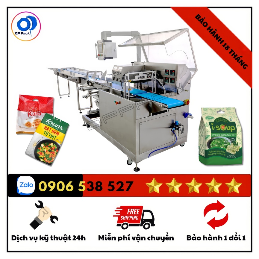 - Tích hợp đường xé phụ răng cưa, tạo sự tiện lợi khi người dùng mở túi. Máy đóng gói OP Pack